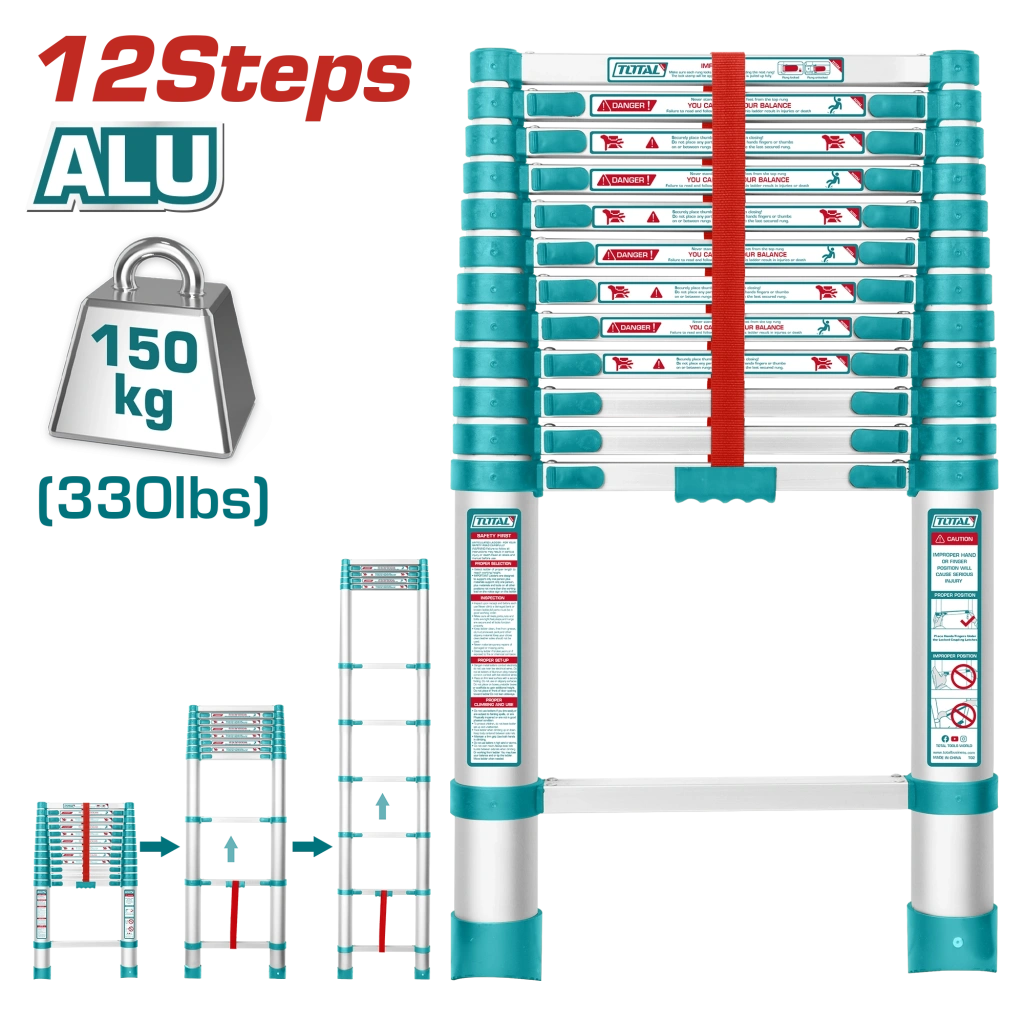 ALÜMİNYUM TELESKOPİK 12 BASAMAK MERDİVEN