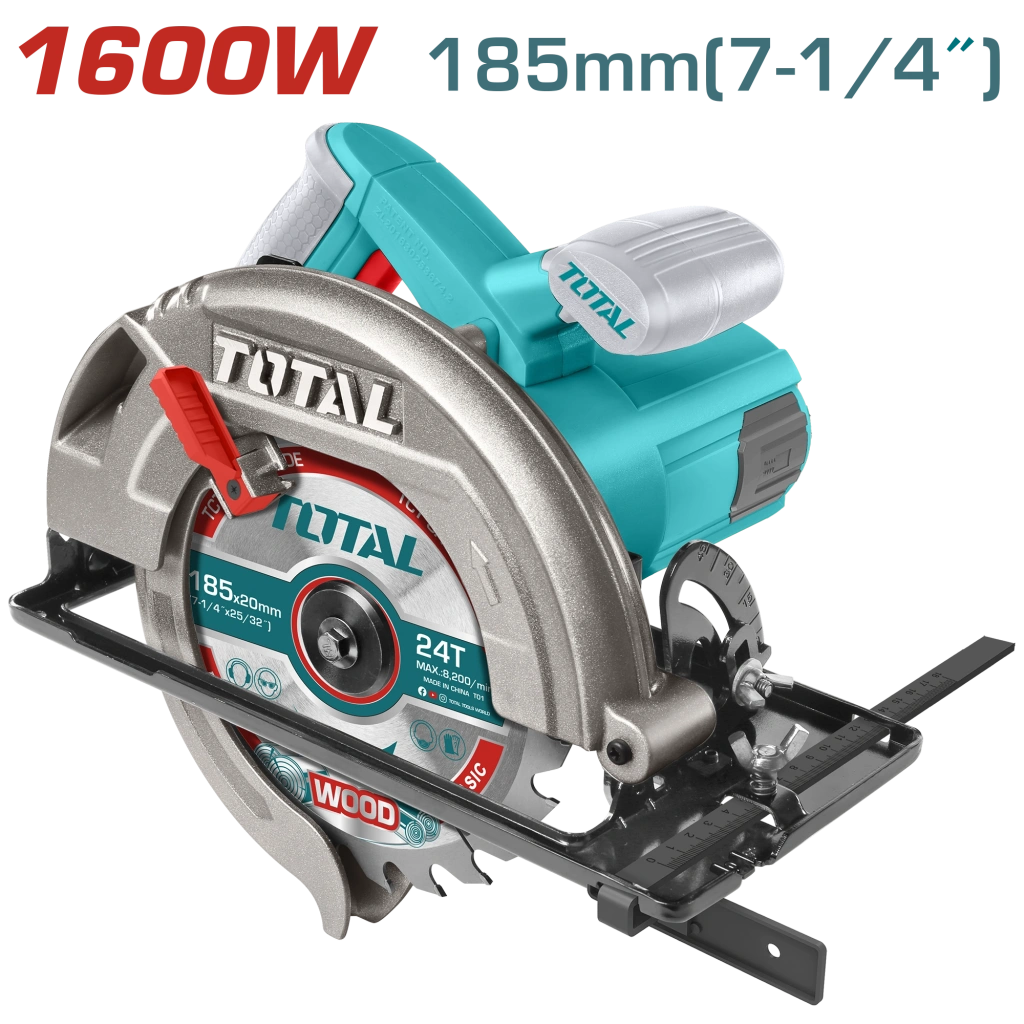 Input power:1600W No-load speed:5000rpm Blade diameter:185x20mm Cutting capacity: 45 degree:44mm 90 degree:65mm Adjustable cutting depth Adjustable bevel cutting With 1set extra carbon brushes With 1pcs 185mm blade Packed by color box