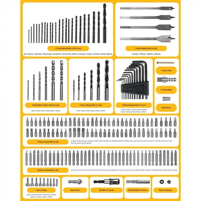 CAT DA01903 201 Parça Delme/Vidalama/Allen Universal Matkap Ucu