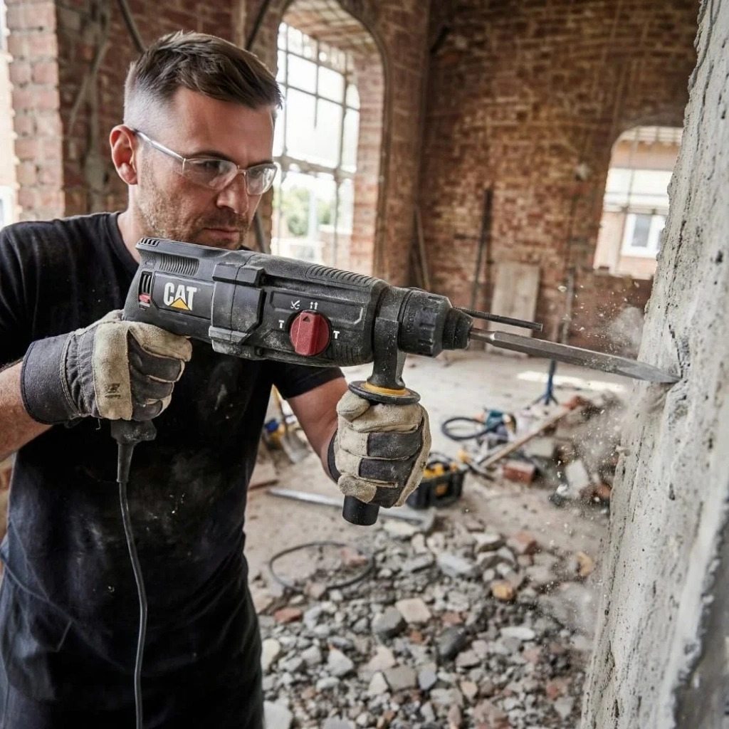 • CAT DX2140 800Watt 3.0J 26MM SDS-Plus Profesyonel Kırıcı/Delici + 1 Adet Delici Uç • 800Watt güçlü motor ile Beton, Duvar, Kaya gibi tüm yüzeylerde Pnömatik mekanizma ile daha yüksek darbe gücü ve sert malzemede üstün delme performansı sağlar. • Tüm uygulamalar için 4 farklı çalışma modu ile darbesiz delme, darbeli delme, kırma ve keski yön verme özelliği sayesinde çok yönlü kullanım imkânı, • Emniyet debriyajı sayesinde uç sıkışmasında ortaya çıkabilecek yüksek torku sönümleyerek kullanıcı güvenliğini maksimum seviyede tutar • Pnömatik mekanizma ile daha yüksek darbe gücü ve sert malzemede yüksek performans. • Yalıtımlı Pnömatik mekanizma tozun darbe mekanizmasına girmesini önleyerek uzun süreli çalışma ve yüksek performans sağlar. • Silikonlu elektrik kablo yapısı ve özel oynar başlı kablo bağlantı noktası sayesinde aşınmayı ve kırılmaları engelleyerek uzun süreli güvenli kullanım. • Beton ve taşta 26mm çapa kadar bağlantı delikleri delmek için uygun özel dişli mekanizması sayesinde uzun süre kullanım imkânı. • Yüksek hassasiyetli elektronik tetik uygulama yüzeylerine göre devir ayarını parmak hareketi ile kolayca ayarlayabilme kolaylığı sağlar. • Mükemmel devir ve darbe hızı yüksek verimlilik sağlar. • Darbesiz Delme özelliği sayesinde ahşap ve metalde delme ve vidalama. • Farklı malzemede değişik çapta delik delmeye ve kırmaya yardımcı olan tetikten ayarlanabilen elektronik hız daha fazla kontrol sağlar. • Tetik üzerine konumlandırılmış sağ/sol ayar düğmesi ile pratik yön değiştirme. • Uzun süre kullanımda avuç içini terletmeyen, titreşimi emen kauçuk kaplı tutma kolu ve yan tutma sapı ile konforlu ve kolay kullanım imkânı. • Güçlü motor soğutma sistemi sayesinde uzun süreli kullanımlarda sorunsuz çalışma performansı sağlar. • Kauçuk kaplı yan tutma kolu uzun süreli kullanımlarda avuç içini terletmez, konforlu kullanım sağlar. • Profesyonel kullanıma uygundur. • Güç: 800 Watt • Yüksüz Hızı 0-1150 dev/dk. • Darbe Oranı 0-4900 darbe/dk. • Tek Darbe Gücü 3.0 Joule • Maksimum Delme Çapı: Beton: 26mm, Metal: 13mm, Ahşap: 30mm • Ağırlık: 3,5 Kg • Standart Ekipman: 8mm Beton Delme Ucu, Derinlik Çubuğu, Ayarlanabilir Yan Tutma Kolu, Taşıma Çantası.