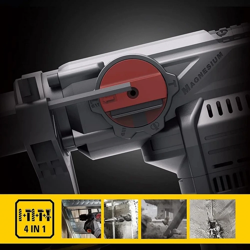 • Tüm uygulamalar için 4 farklı çalışma modu ile darbesiz delme, darbeli delme, kırma ve keski yön verme özelliği sayesinde çok yönlü kullanım imkânı,