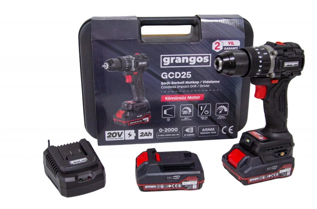 Komple Set: Özel taşıma çantası, hızlı şarj aleti ve 2 adet 2 Ah akü ile birlikte gelir