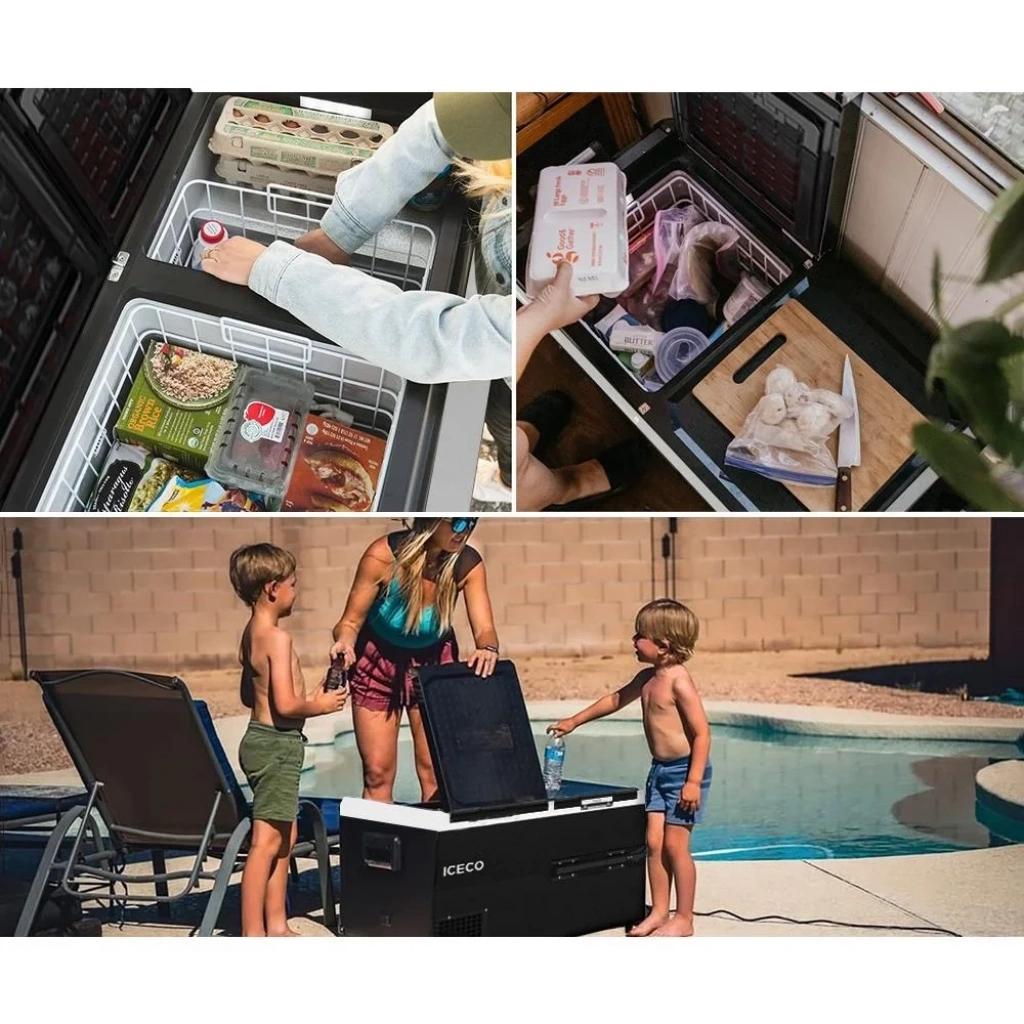 ICECO K75D 12/24Volt 75Lt Akülü/Kablolu/ Çift Bölmeli Kompresörlü Outdoor Oto Buzdolabı/Dondurucu (Akü Dahil Değildir)