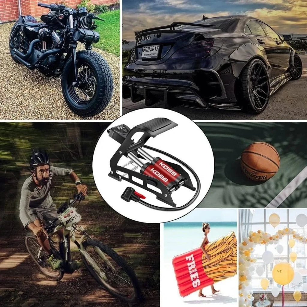 • Güçlü 108 PSI / 7.5 Bar şişirme gücü ile Otomobil, motosiklet, cip, karavan ve bisiklet lastikleri ile toplar, balon, lastik bot, yatak vb. şişirmek için uygundur.