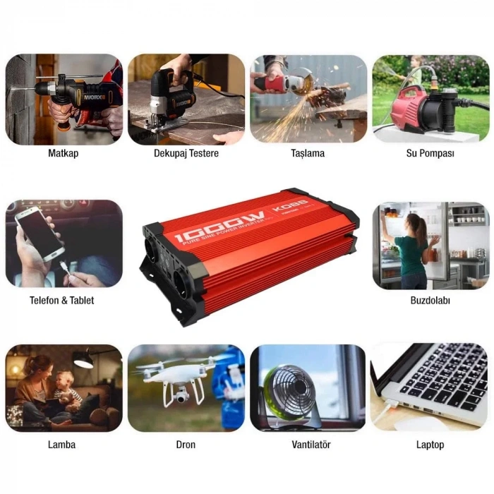 KOBB KBN1000 12V/220V 1000Watt Tam Sinüs Dönüştürücü İnvertör