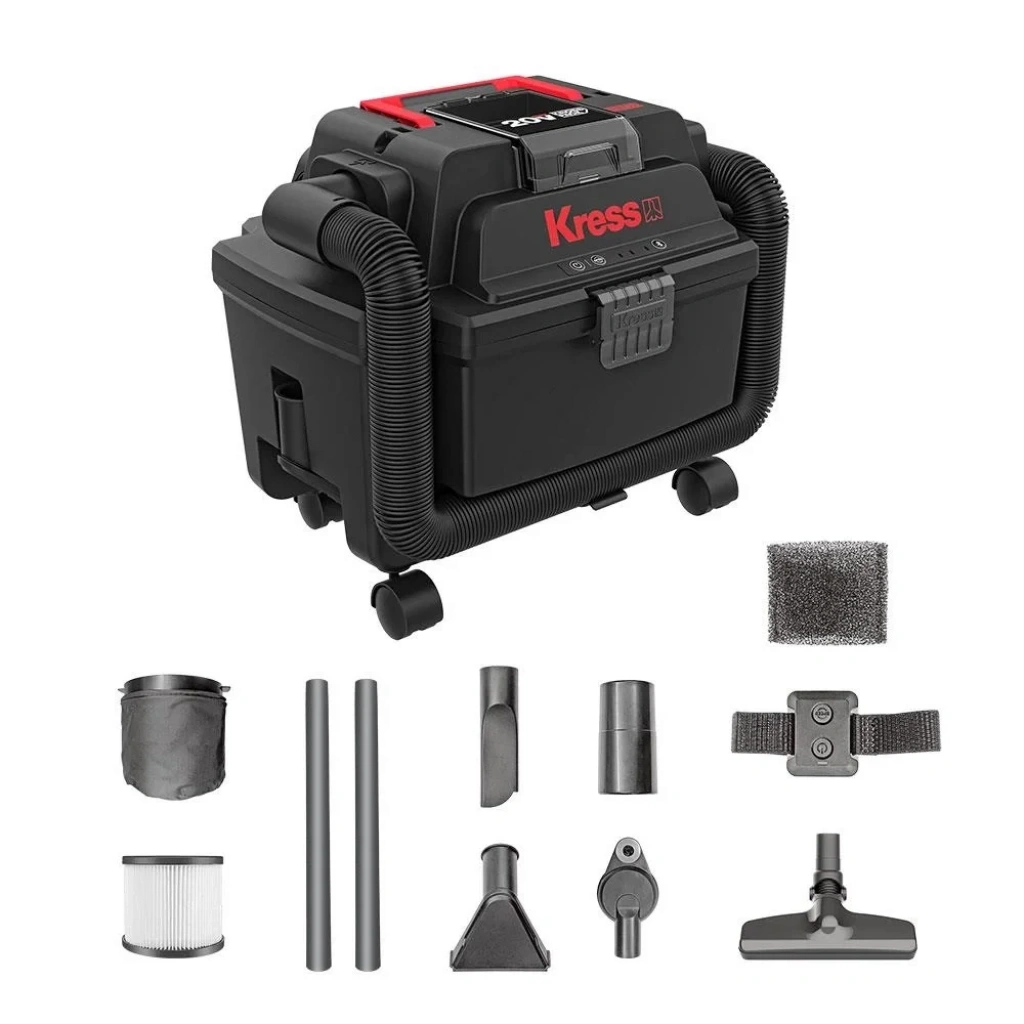 • Kress KH035.9 20Volt 250W/17Kpa Kömürsüz Flexi Esnek Hortumlu / Bluetooth Kontrollü Profesyonel Şarjlı Islak/Kuru Süpürge & Üfleme (Akü Dahil Değildir)