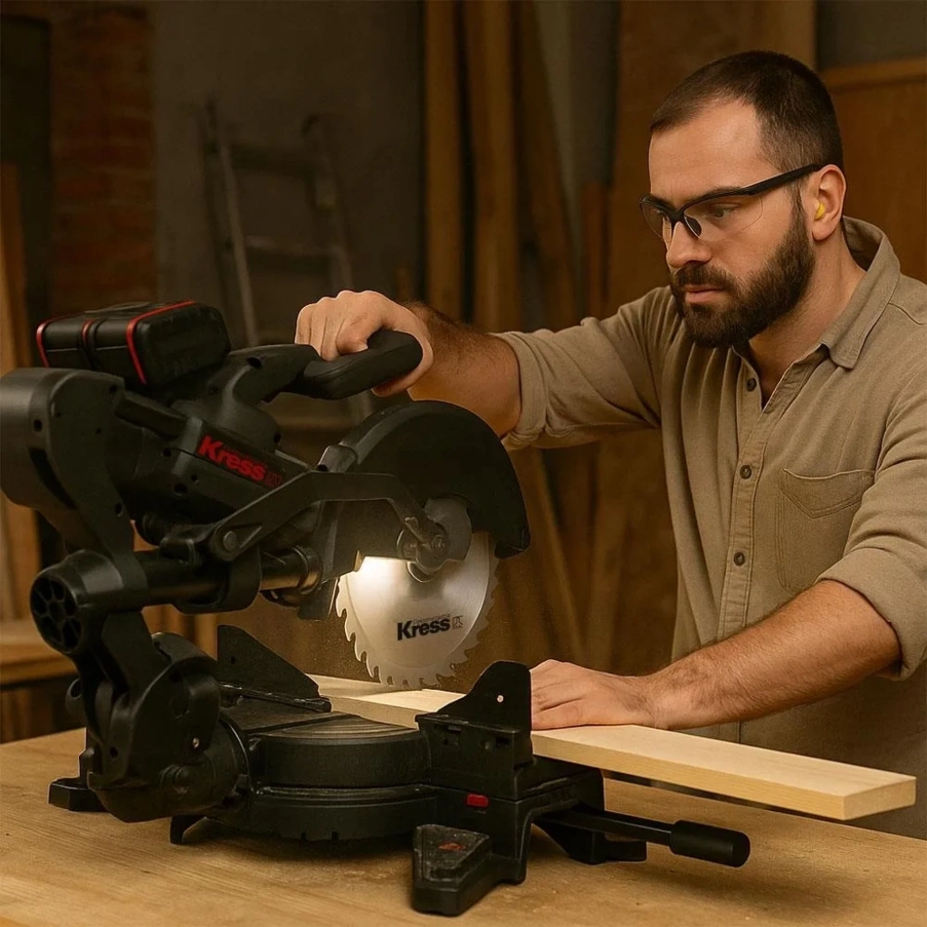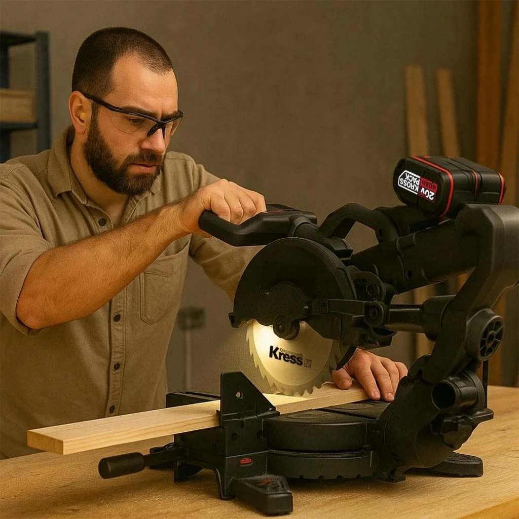 • Kress KH483.9 40Volt 1400W 254MM Kömürsüz Kızaklı Bluetooth Bağlantılı Profesyonel Gönye Kesme (Akü Dahil Değildir)