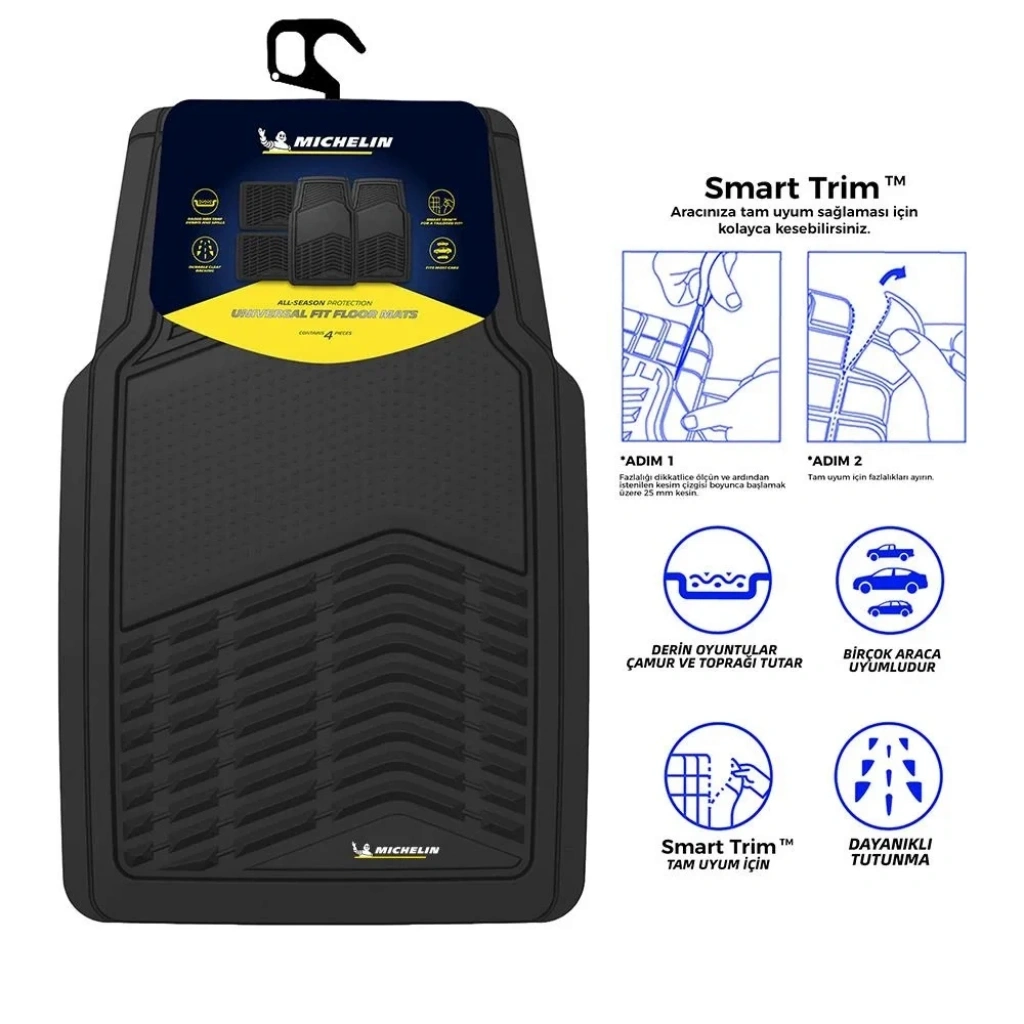 Michelin MC33856 Tüm Araçlara Uyumlu 4 Parça Üniversal 3D Havuzlu Oto Paspas