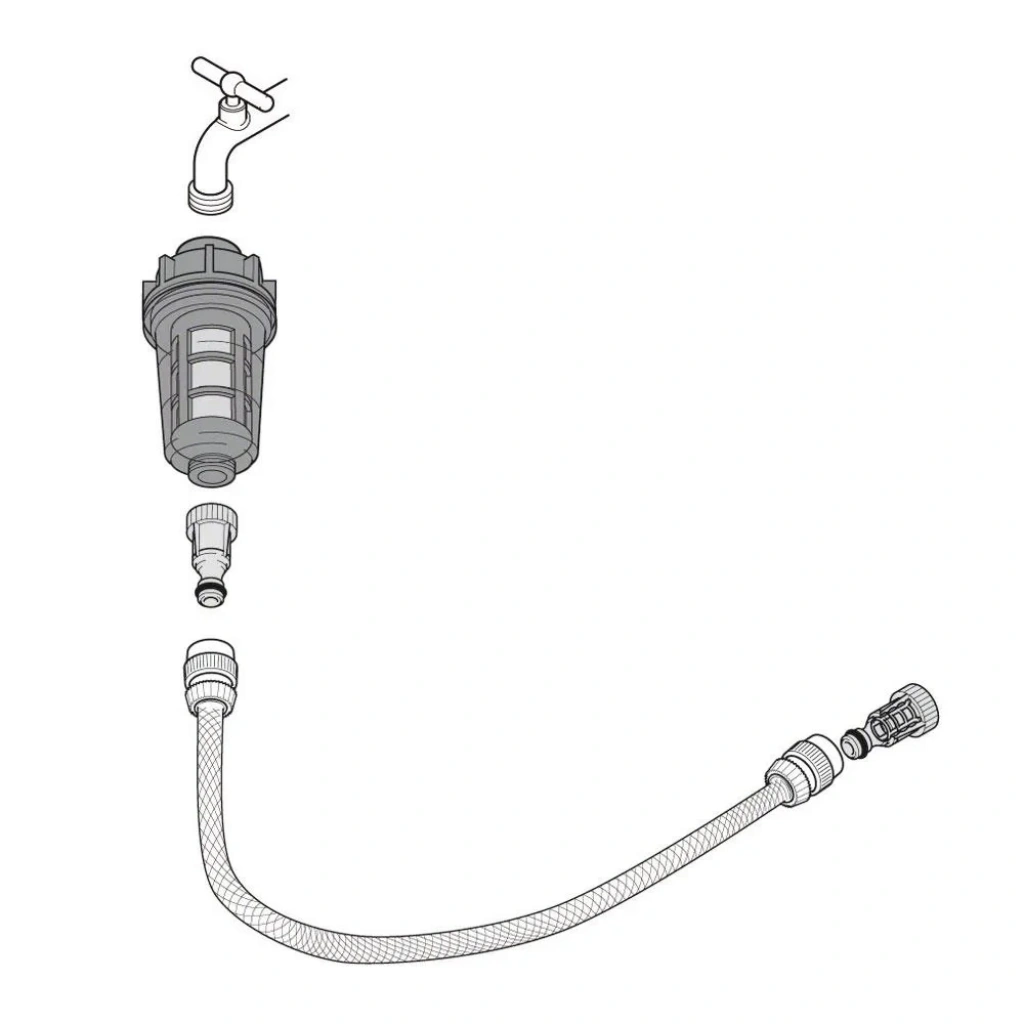 · Tüm hızlı bağlantı adaptörler ile musluk başlarına veya basınçlı yıkama makinelerinin su girişine bağlanarak suyu filtreler, yosun ve kum gibi parçacıkların pompa mekanizmasına girmesini engeller.