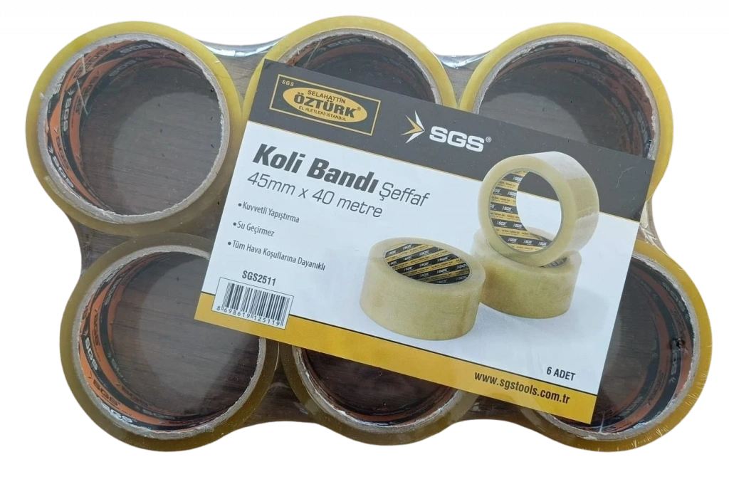 SGS KOLİ BANDI ŞEFFAF 45MM*40MT AKRİLİK 6 ADET