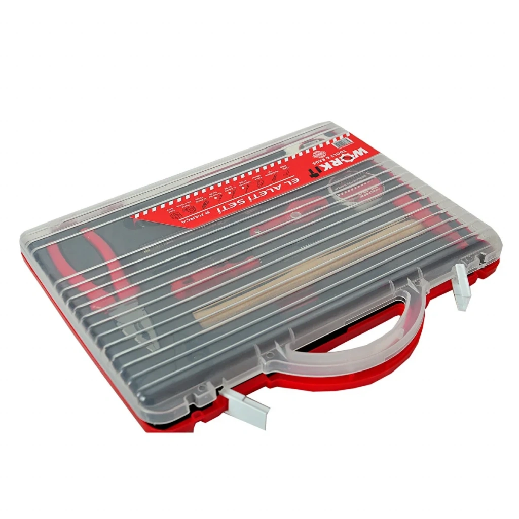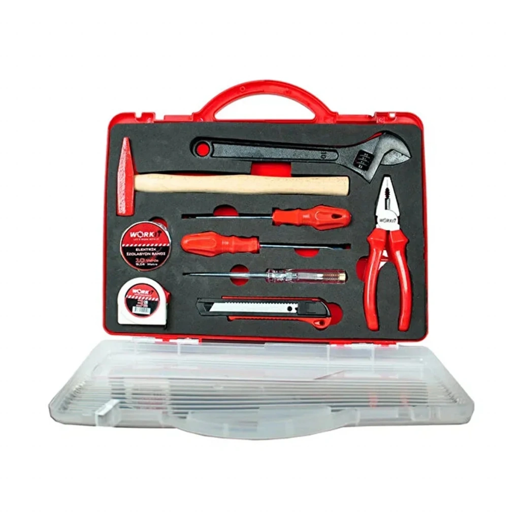 Workit 9 Parça El Aleti Seti, evinizdeki küçük onarımlardan atölyenizdeki profesyonel işlere kadar ihtiyacınız olan temel el aletlerini tek bir çantada toplar. Dayanıklı yapısı ve ergonomik tasarımları sayesinde, bu set ile her türlü montaj, tamirat ve ölçüm işini kolaylıkla halledebilirsiniz. Kaliteli malzemeden üretilmiş aletler, uzun ömürlü kullanım ve yüksek performans sunar.