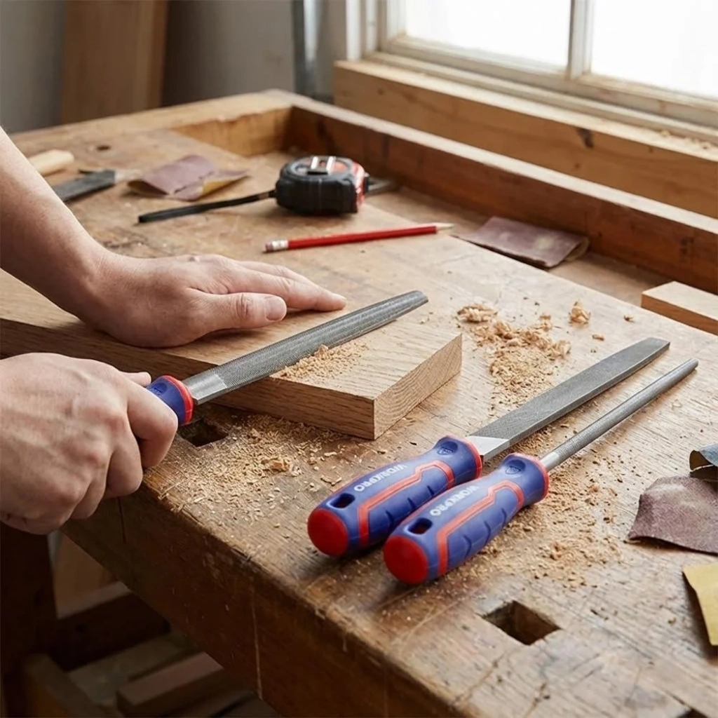 • WORKPRO WP201702 3 Parça 200mm Ağır Hizmet Tipi Metal Eğe Seti • 200mm geniş düz eğe, 200mm balık sırtı eğe, 200mm yuvarlak eğeden oluşan settir. • Metal yüzeylerde kesim sonrası oluşan çapakların temizlenerek pürüzsüz hale getirilmesinde, metal yüzeylerdeki deliklerin eğelenerek delik çapının genişletilmesinde, pah kırma işlemlerinde, parlak metal yüzeylerde pürüzlendirme, keskinleştirme gibi işlem yapmanızı sağlayan yüksek karbon içerikli ağır hizmet SK2 çelikten üretilmiştir. • SK2 yüksek karbon çeliğinden üretilen son derece dayanıklı gövde ve kesici dişler ile uzun süre keskinliğini muhafaza ederek uzun kullanım ömrü sunar. • Patentli ANTI-SHOCK™ Avuç içini terletmeyen ve titreşim emici kauçuk kaplı tutma sapı sayesinde uzun süreli çalışmalarda avuç içine zarar vermez el ve bilek sağlığınızı korumanızı sağlar.