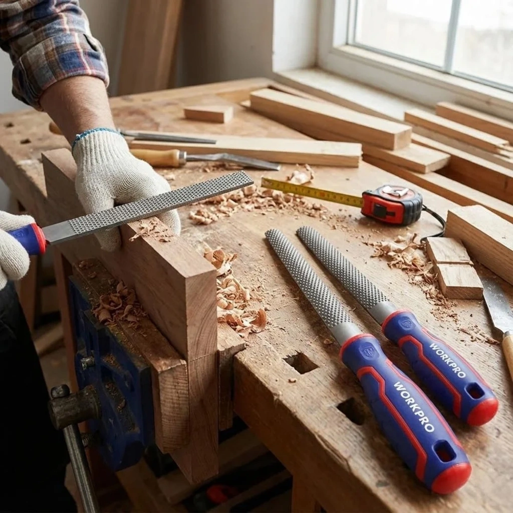 • WORKPRO WP201703 3 Parça 200mm Profesyonel Ahşap Törpü Seti • 200mm geniş düz törpü, 200mm balık sırtı törpü, 200mm yuvarlak törpü den oluşan settir. • Ham veya işlenmiş ahşap yüzeylerde kesim sonrası oluşan çapakların temizlenerek pürüzsüz hale getirilmesinde, kavisli yüzeylerin törpülenerek inceltilmesinde, ahşap yüzeylerdeki deliklerin törpülenerek delik çapının genişletilmesinde, pah kırma işlemlerinde, PVC tesisat boruların kesim sonrası çapaklarından temizlenmesinde, plastik kalıpların kalıntılarını törpüleme işlerini yapmanızı sağlayan yüksek karbon içerikli ağır hizmet SK2 çelikten üretilmiştir. • SK2 yüksek karbon çeliğinden üretilen son derece dayanıklı gövde ve törpüleyici dişler ile uzun süre sertliğini muhafaza ederek uzun kullanım ömrü sunar. • Avuç içini terletmeyen ve titreşim emici kauçuk kaplı tutma sapı sayesinde uzun süreli çalışmalarda avuç içine zarar vermez el ve bilek sağlığınızı korumanızı sağlar.