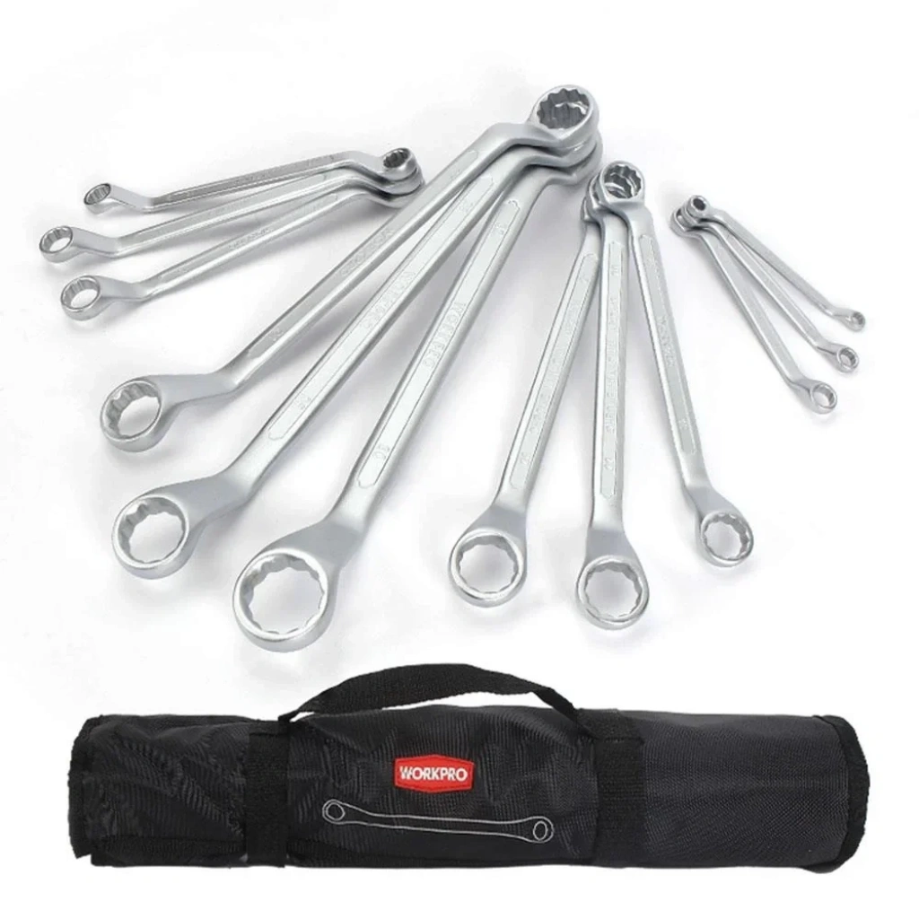 • WORKPRO WP202510 6-32mm 12 Parça CR-V Profesyonel İki Ağızlı Yıldız Anahtar Takımı + Bez Taşıma Kılıfı