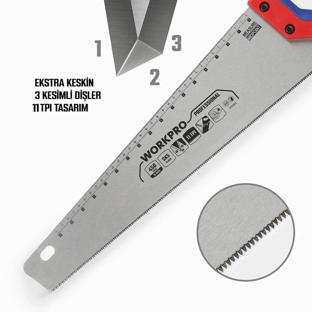 WORKPRO WP215010 450mm SK5 11 TPI Ağır Hizmet Tipi El Testeresi