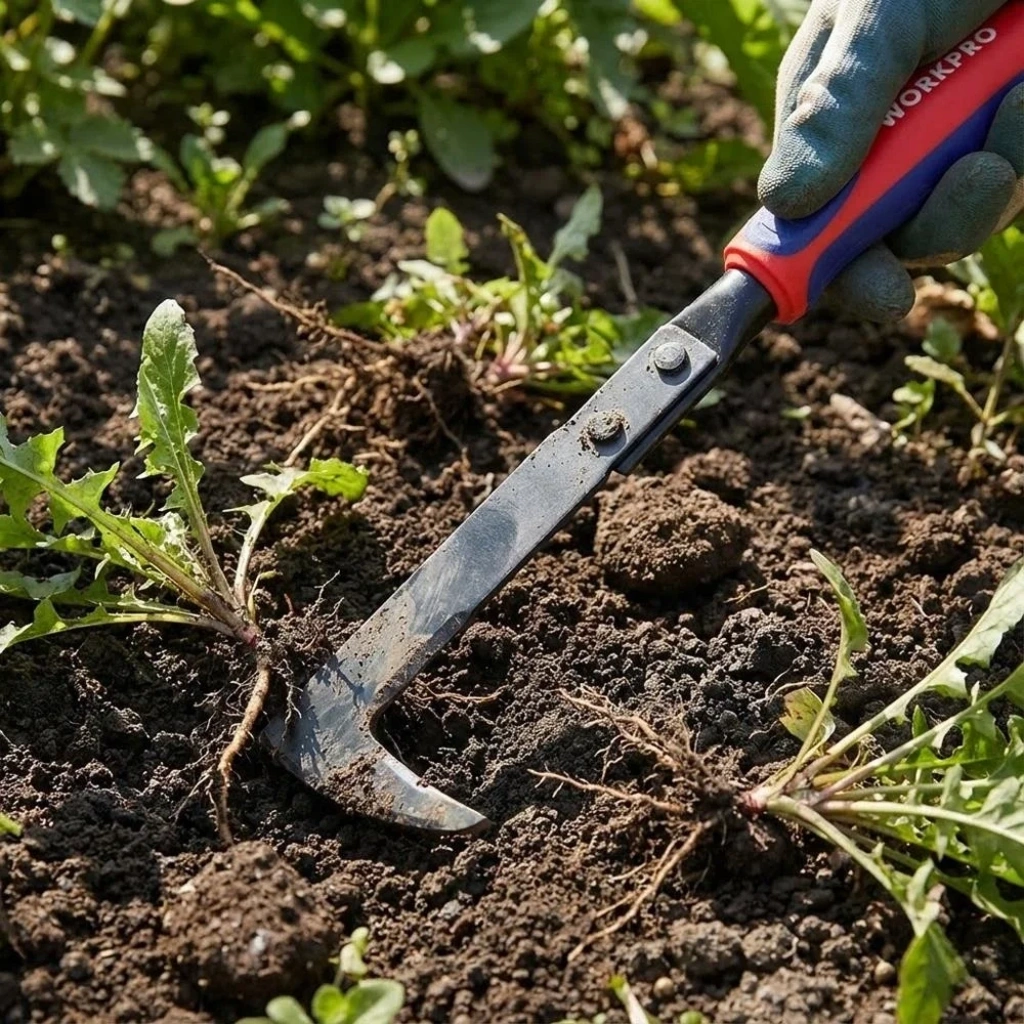 • WORKPRO WP331029 312x70mm Profesyonel Çim/Yabani Ot Kazıma Bıçağı • Sertleşmiş toprakta kazıma, çimlerin arasında yetişen yabani otları sökme ve temizlemede, parke taşlarının veya asfalt aralarından çıkan yabani otların sökülmesinde son derece idealdir. • Çelik gövde üzerinde pah verilmiş ve sertleştirilmiş kancalı ağız tasarımı kesici yüzey sayesinde yabani otların köklerini kolayca kesmenizi ile kolay sökmenizi sağlar. • Avuç içini terletmeyen ve titreşim emici kauçuk kaplı tutma sapı sayesinde uzun süreli çalışmalarda avuç içine zarar vermez el ve bilek sağlığınızı korumanızı sağlar. • Kanca tipi ağız yapısı ile parke taşları arasında çıkan yabani ot veya çimlerin kazıyarak çıkarılması için idealdir. • Bahçe bordür kenarlarında çıkan istenmeyen yabani otların temizlenmesinde kolaylık sağlar. • Kolay saklama için sap üzerine entegre geniş askı deliği.