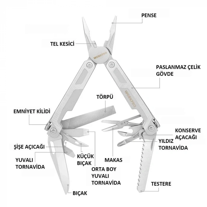 WORKPRO WP382002 15 IN 1 Çok Fonksiyonlu Profesyonel Pense Seti + Taşıma Kılıfı
