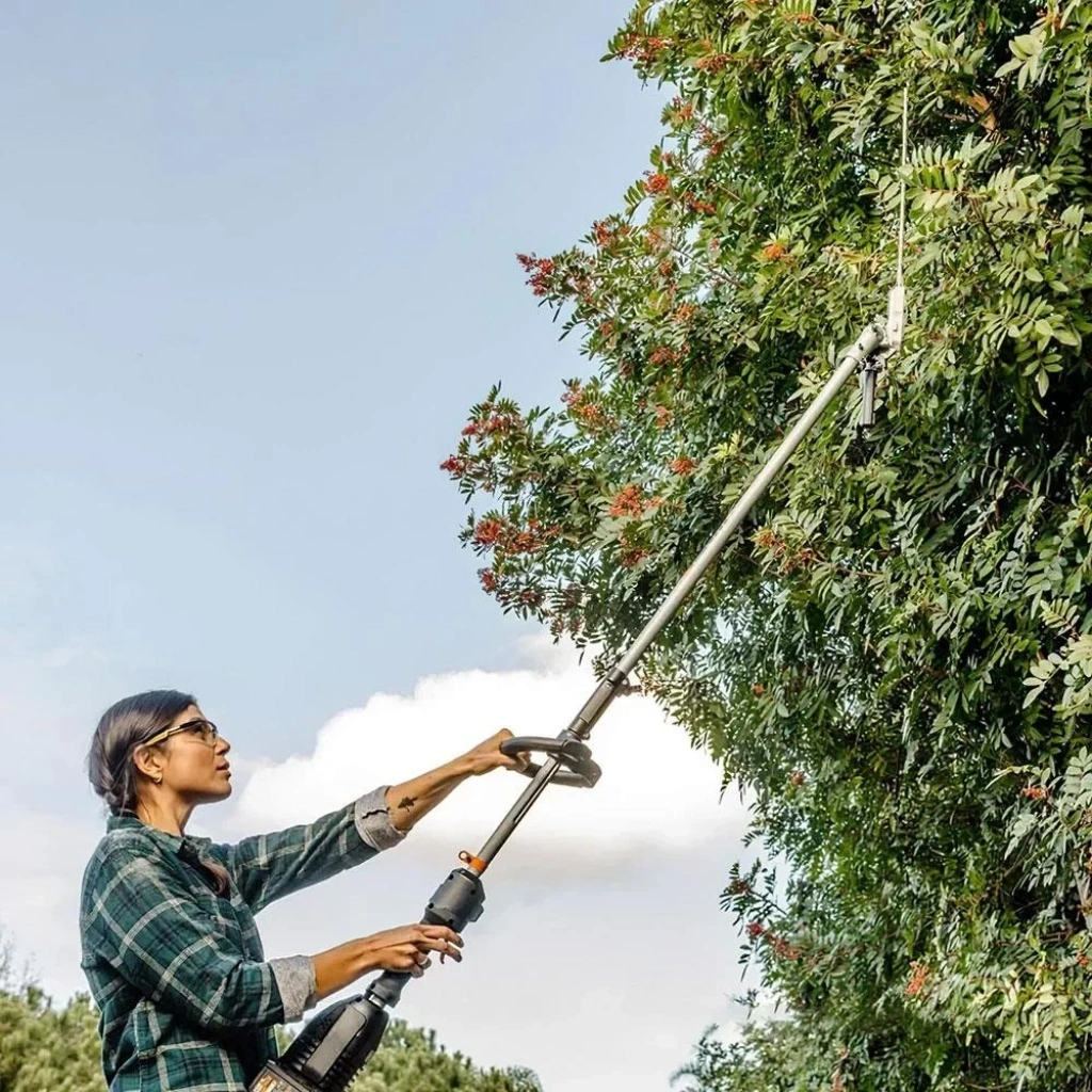 · Worx WG186E.1 çok fonksiyonlu misina/tırpan ile uyumlu 3m toplam yüksekliğe sahip 43cm bıçak uzunluğu ile ulaşılması zor açı ve yüksekliklerde 40Volt Li-ion akü ve Kömürsüz motor teknolojisi ile tüm rakiplerinden daha güçlü ve yüksek performans.