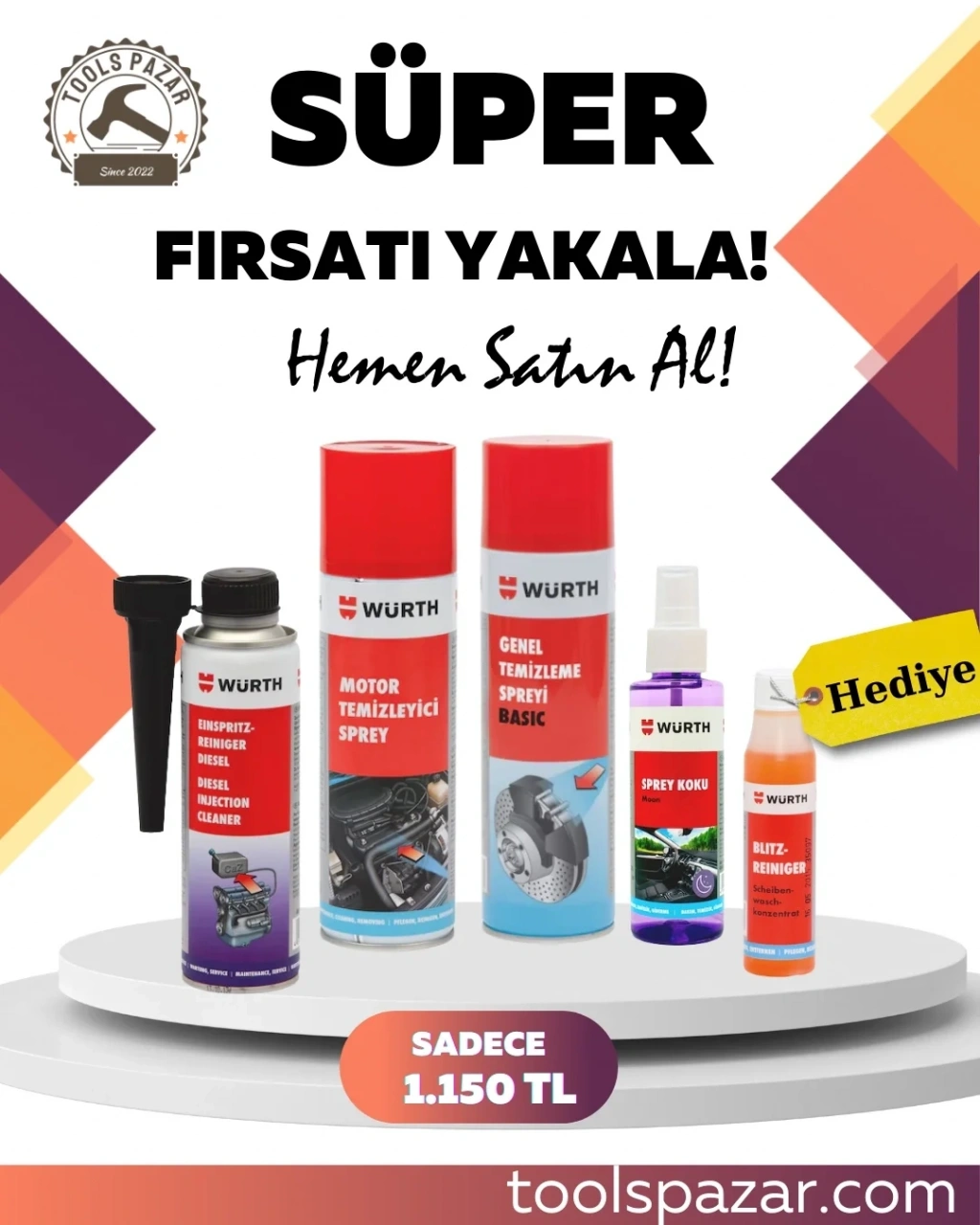 WÜRTH KIŞ SETİ (Cam suyu, Buz Çözücü, Buğu Önleyici, Yağmur Kaydırıcı + Cam Sabunu)