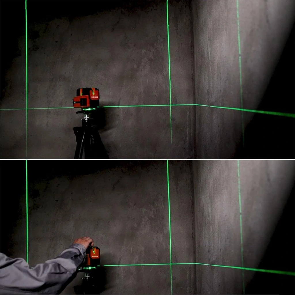• 360⁰ zemin yatay lazer ışını sayesinde zemin ve duvarların her yüzeyini eşit seviyede hizalama sağlar.